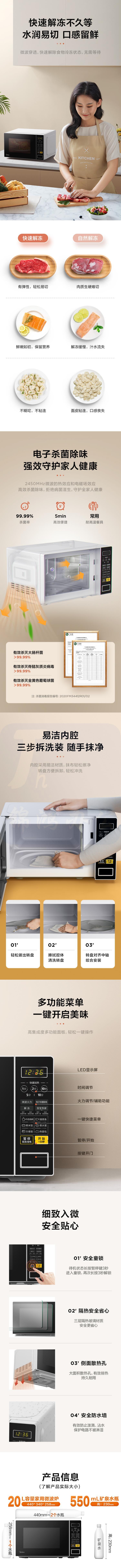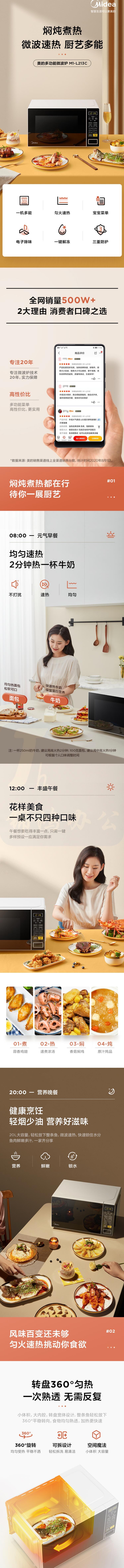 美的 20升微波炉 微电脑操控 转盘加热智能菜单 一键解冻 杀菌电子除味 薄膜按键 M1-L213C