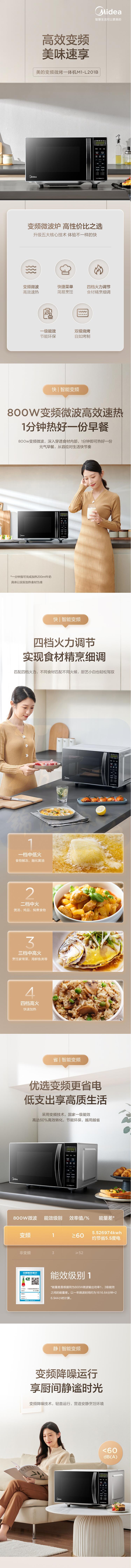 美的 M1-L201B 20升变频智能 微波炉 微烤一体机 智能菜单光波炉