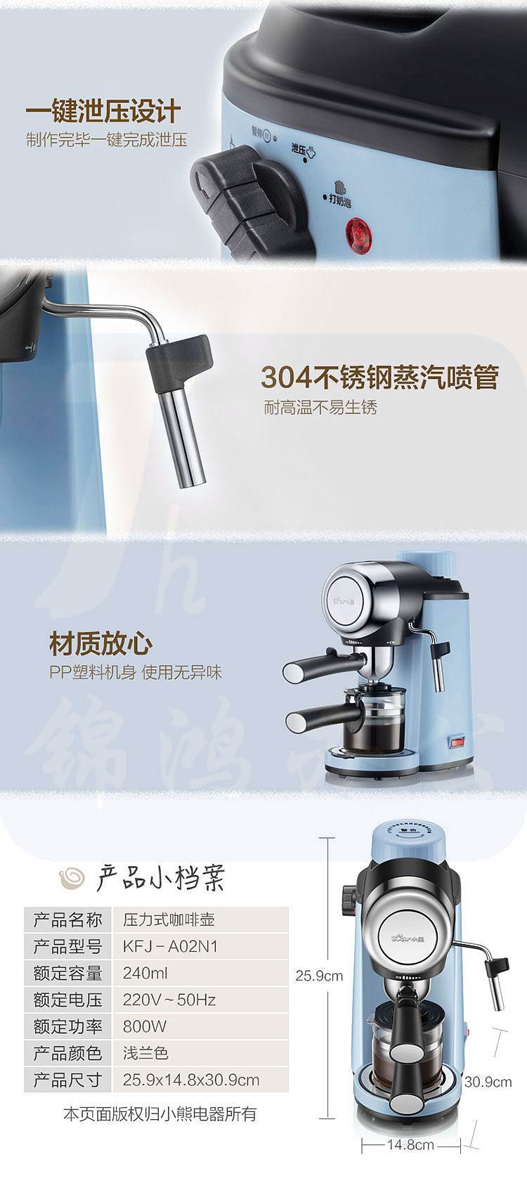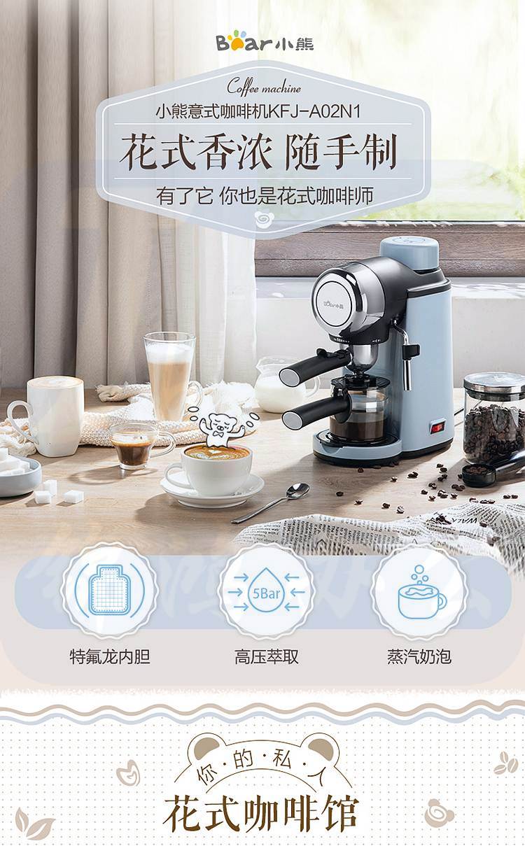 小熊 KFJ-A02N1 可打奶泡 半自动意式咖啡机(台)