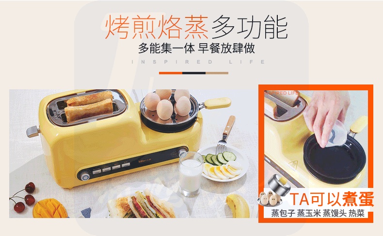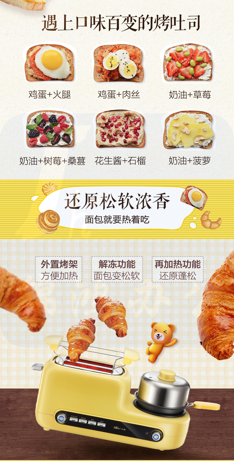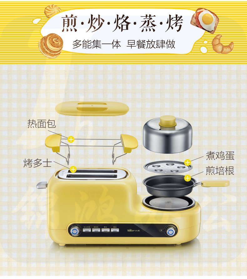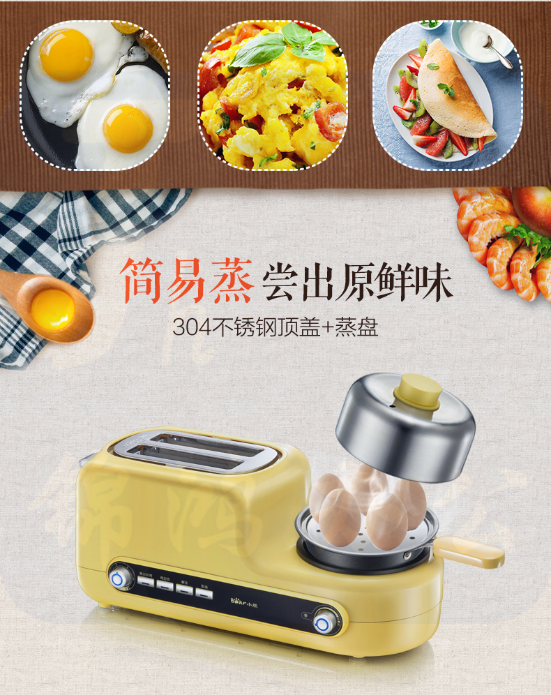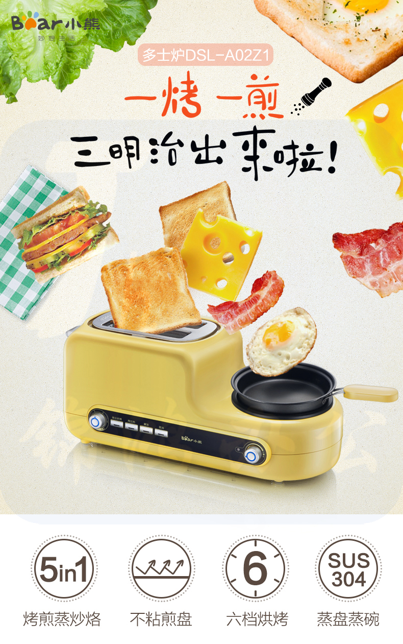 小熊(Bear) 烤面包片机 多功能多士炉家用2片早餐吐司机 煮蛋器蒸蛋煎蛋 DSL-A02Z1