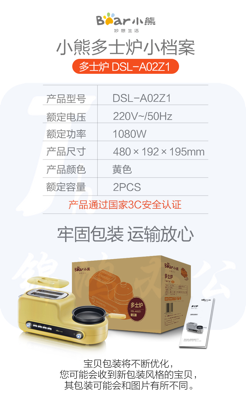 小熊(Bear) DSL-A02Z1 烤面包机 2片家用早餐机多士炉吐司机蒸蛋器煮蛋煎蛋
