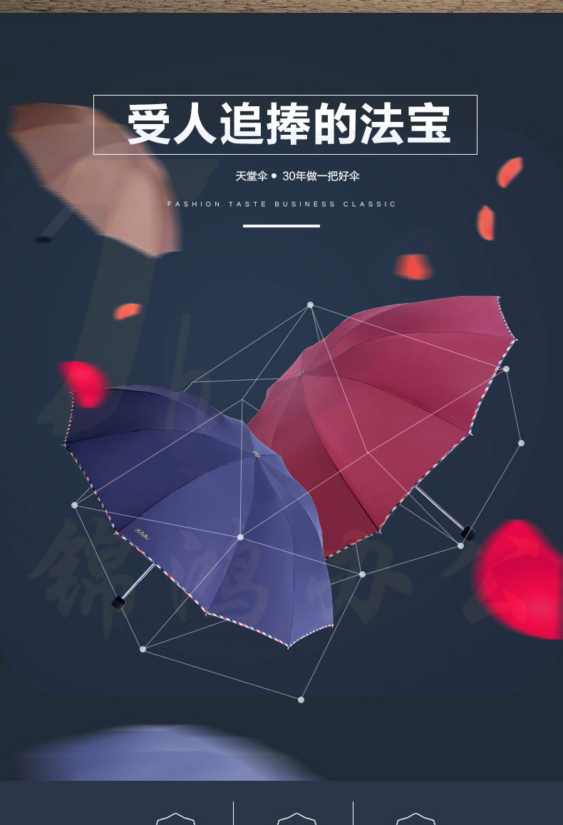 天堂伞 加大商务遮阳伞晴雨伞 伞弧128cm+3311