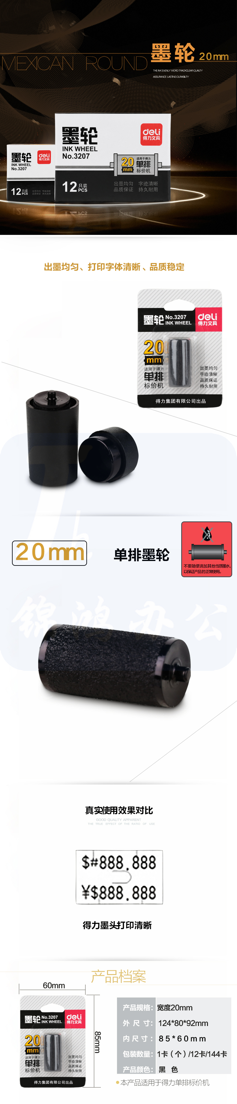 得力3207单排墨轮(黑)(12只)用于打价标价机 打价器 超市打价格标签机