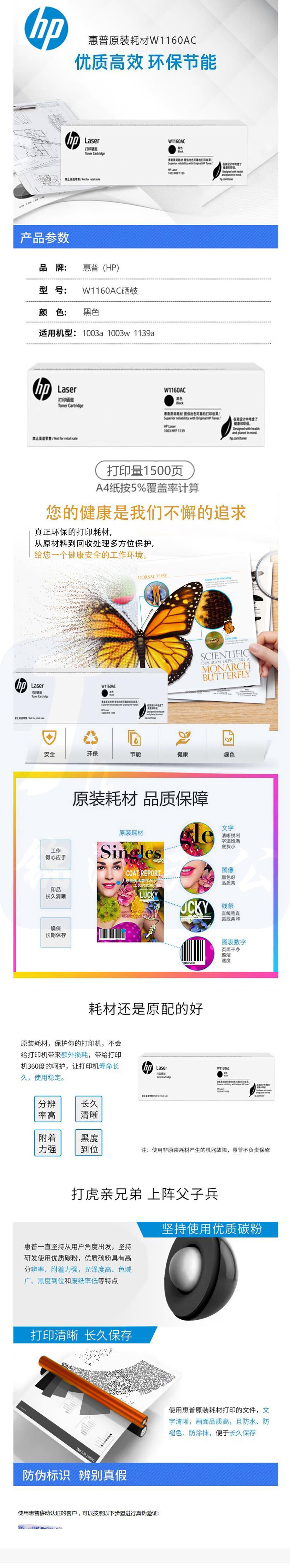 惠普 W1160AC 黑色适用于1003a 1003w 1139a (约1500页)
