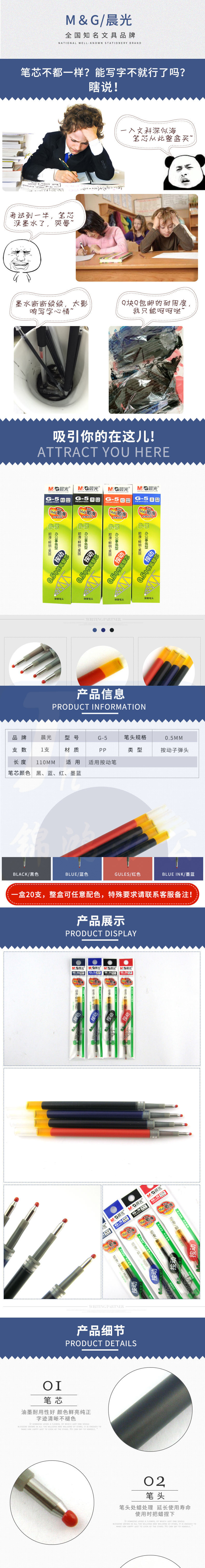 晨光 G-5蓝色0.5mm按动中性笔芯 20支装 签字笔替芯 水笔芯 1008/K35/S01/S08适用