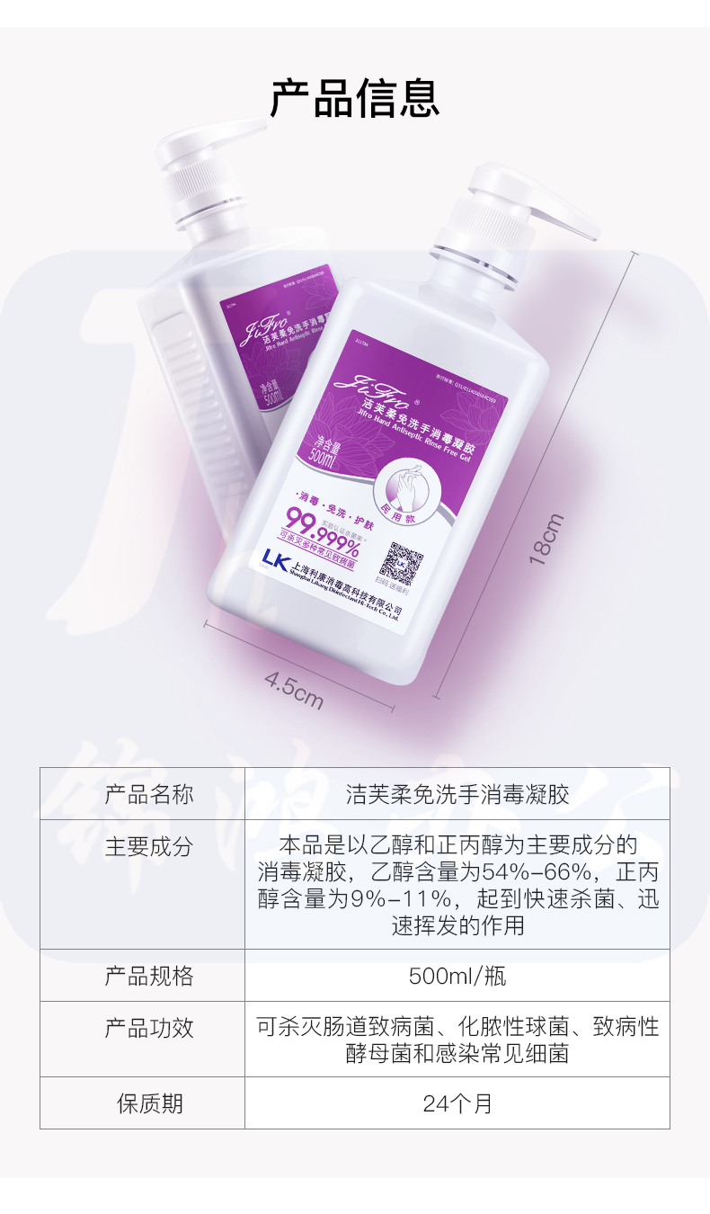 洁芙柔 JIFRO 免洗洗手液500ml消毒凝胶