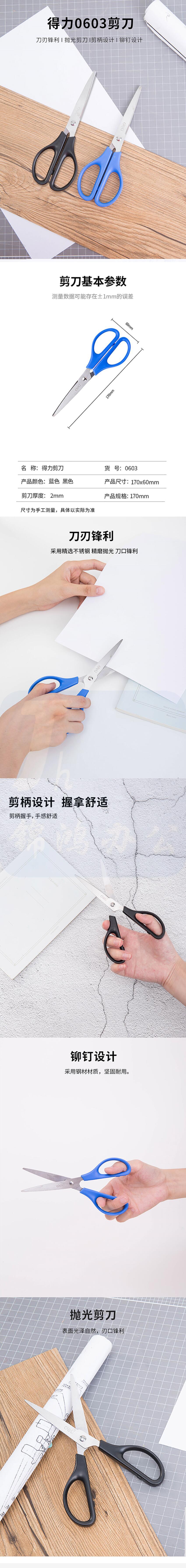 得力 170mm办公生活手工剪刀 蓝色0603