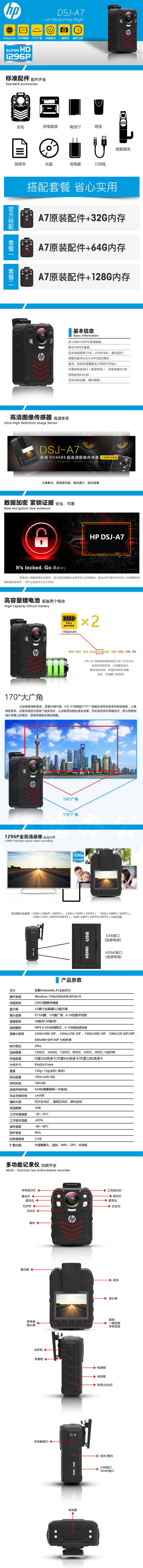 惠普(HP) DSJ-A7 32G执法记录仪 1296P高清红外便携现场记录仪执法仪(两块电池+座充)