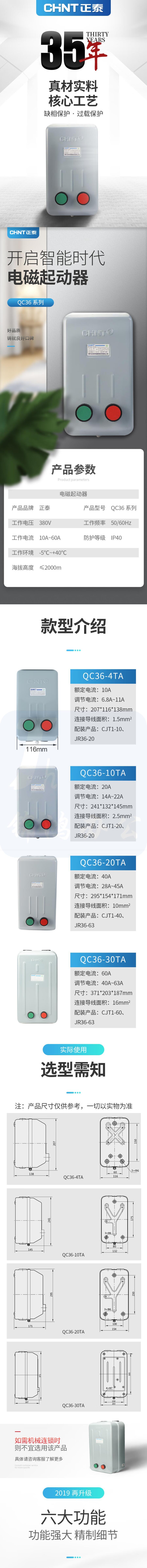 正泰 QC36-20TA-380V-32A电动机电磁启动器 起动器缺相保护磁力开关