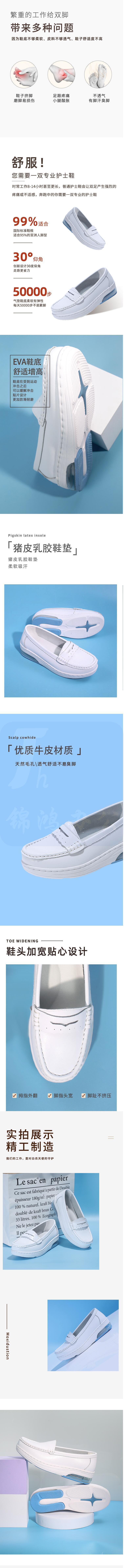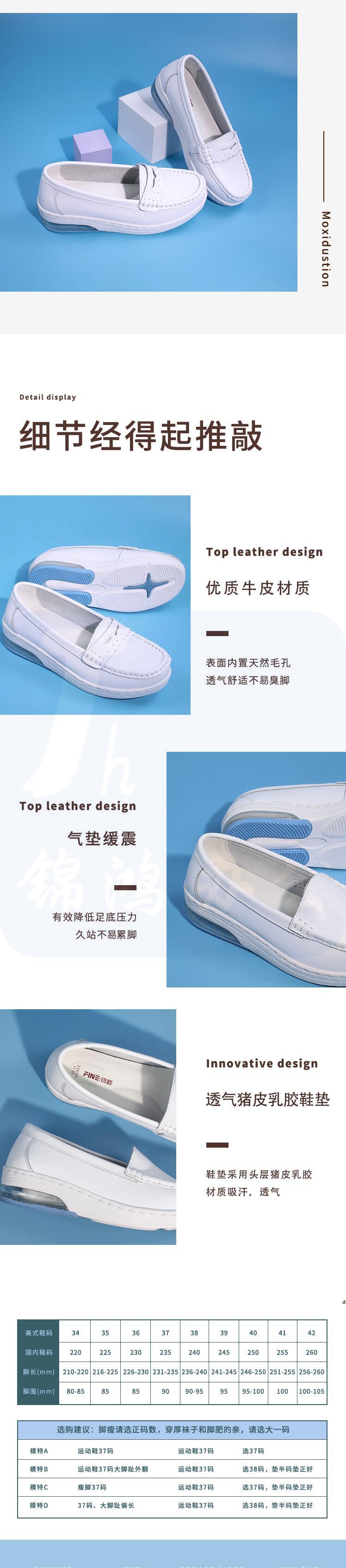 绯樱 1609气垫护士鞋秋冬款真牛皮软底透气浅口低帮平底一脚蹬装饰带33~42码