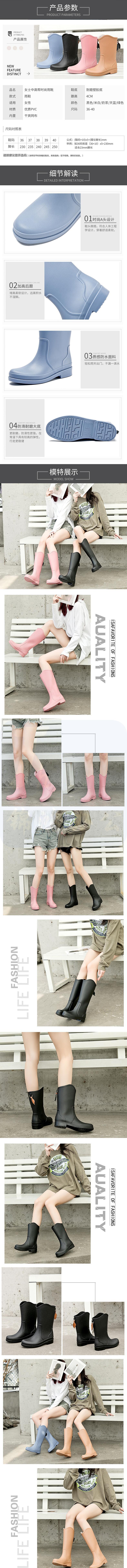 中筒雨靴胶鞋 棕色保暖加绒袜套鞋雨鞋时尚软底女款