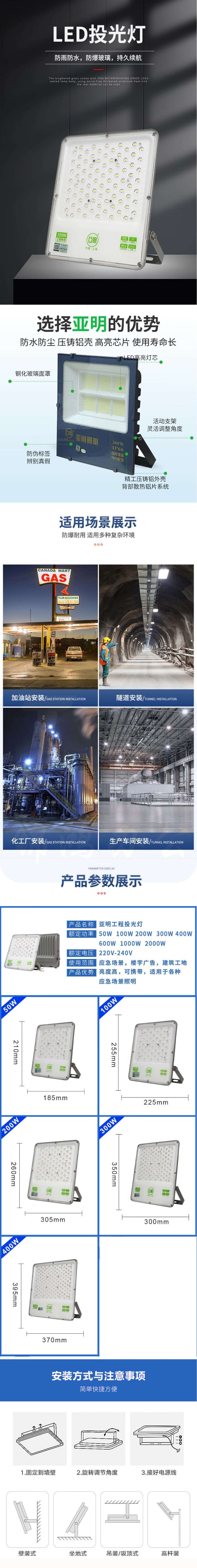 亚明 LED透镜投光灯 泛光灯户外防水射灯高杆灯探照灯 YM-2121系列-300W 足瓦透镜款 白光