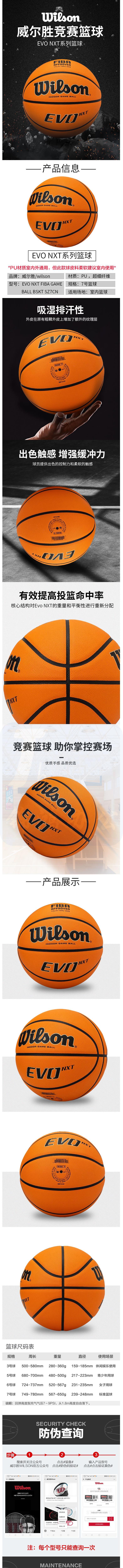 威尔胜(Wilson)篮球7号球 PU材质 吸湿 室内室外通用比赛专业用球 WTB0965IB07CN 货号:ZF