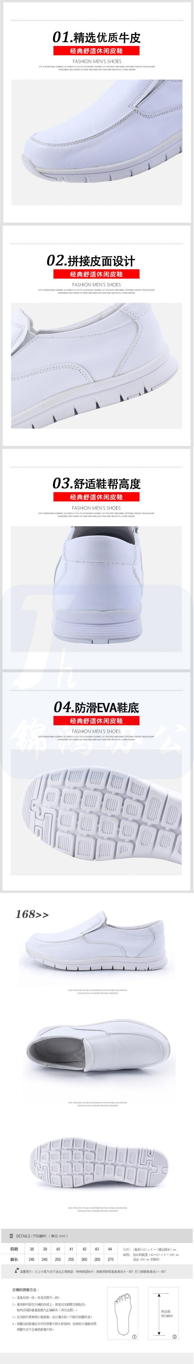 绯樱 168男款护士鞋真牛皮软底透气深口低帮平底一脚蹬38~48码