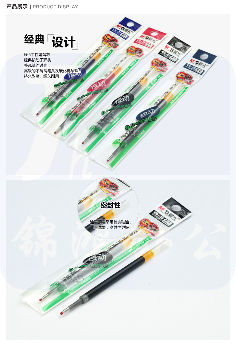 晨光 中性替芯G-5墨蓝 0.5mm按动子弹头中性笔芯 签字笔替芯水笔芯 K35/S01/S08适用 20支/盒