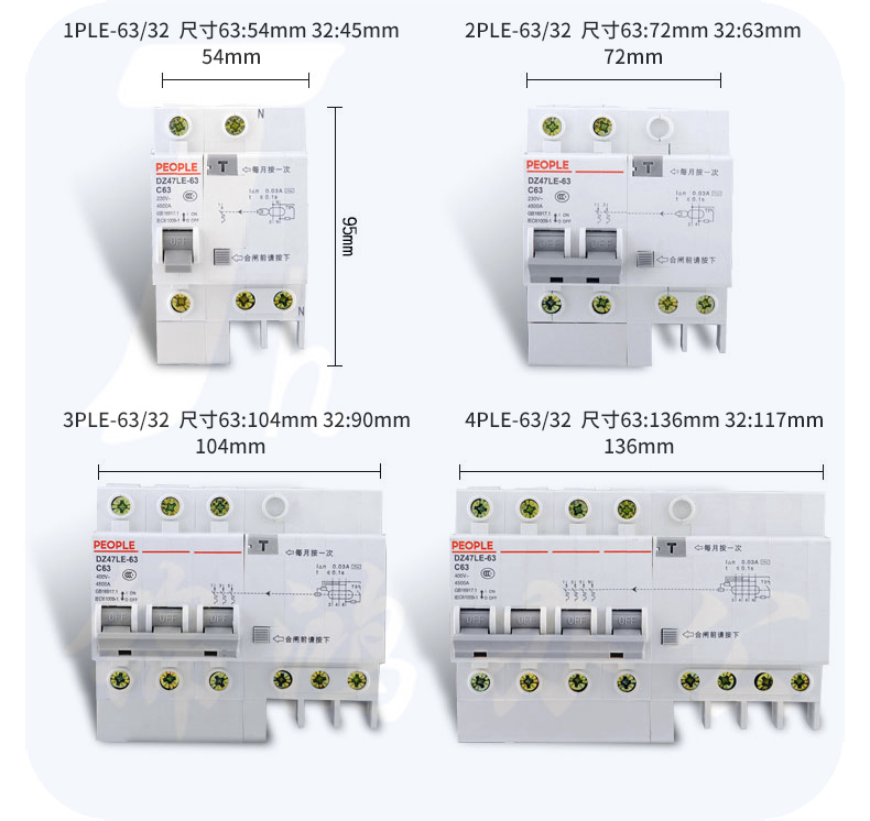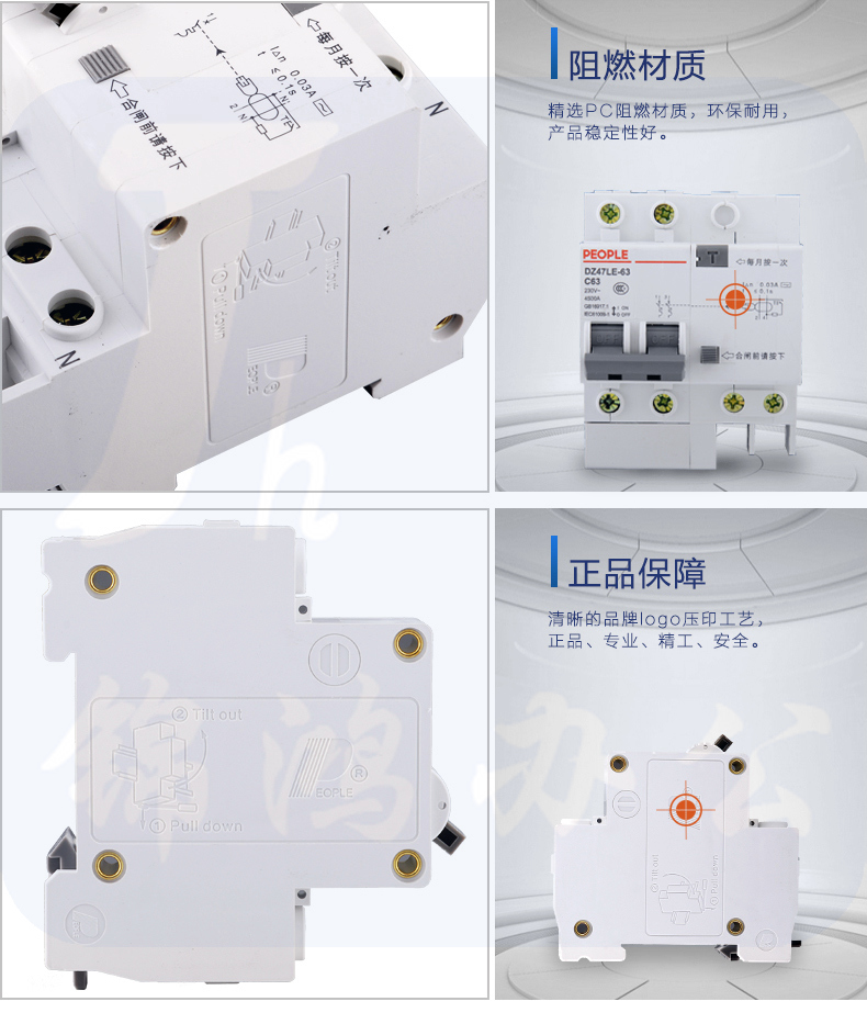 人民电器 DZ47LE-2P50A 拼装 漏电保护器