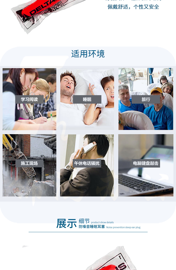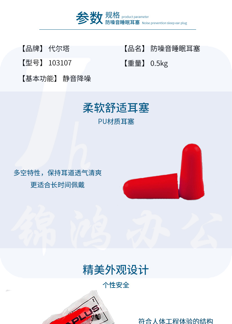 代尔塔 103107 大包装500副PU耳塞 子弹型耳塞无绳