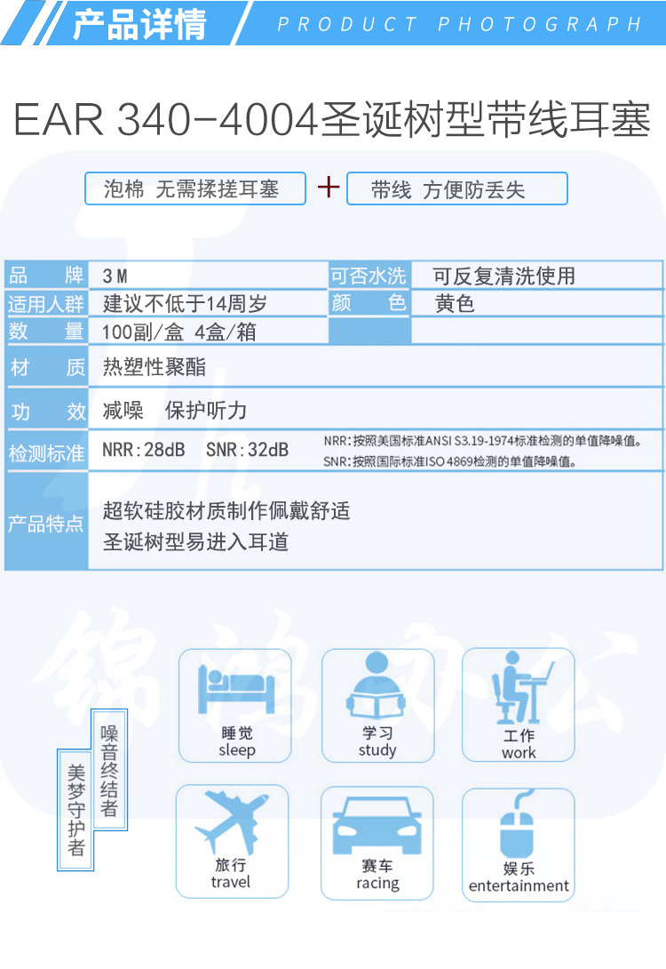3M 降噪耳塞 340-4004防噪声耳塞 射击防护耳塞