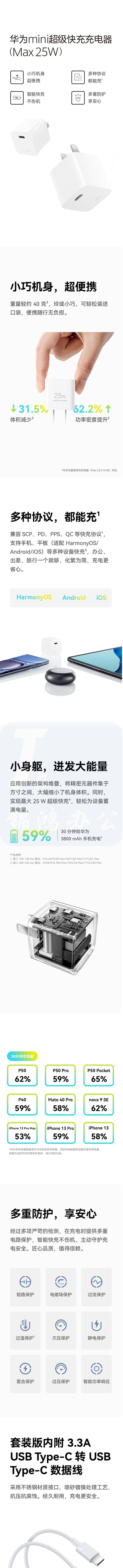 华为 超级快充充电器(Max25W) 附Type-C转Type-C线/兼容PD 20W/