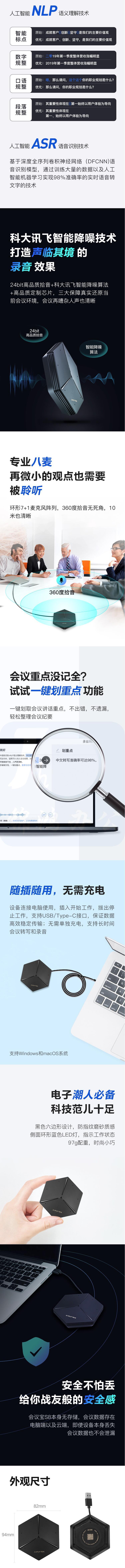 科大讯飞 会议宝S8 录音转写会议纪要转写机 智能会议机 实时语音转文字 企业版