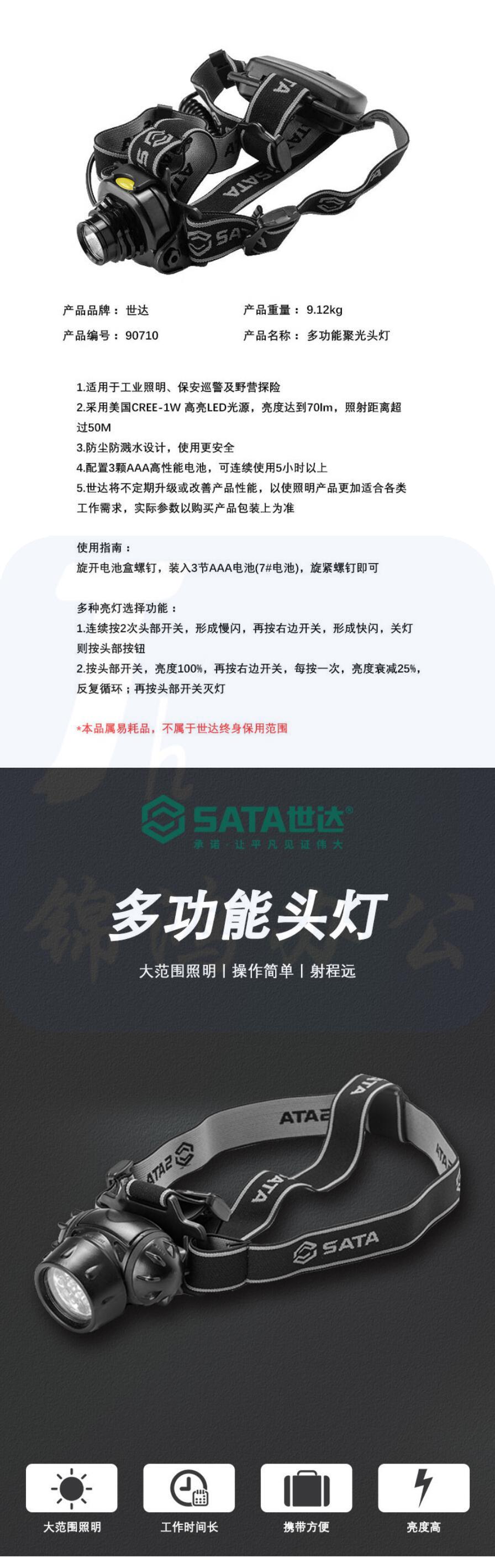 世达 多功能聚光头灯头灯 90710