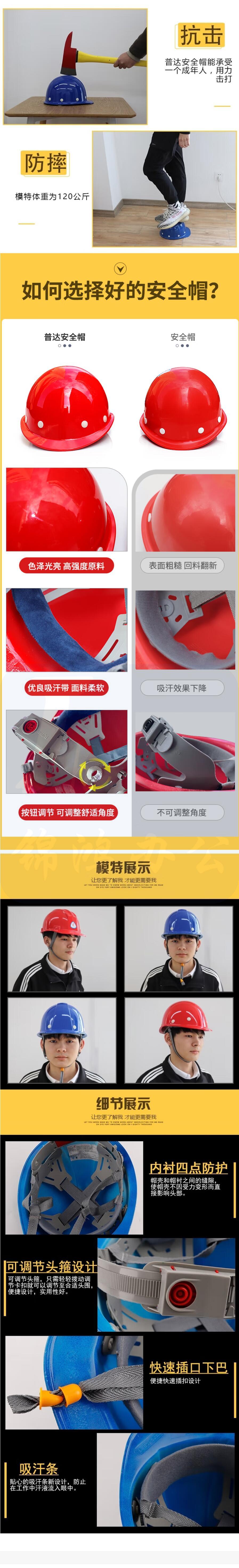 普达 安全帽 圆顶玻璃钢 新国标ABS 蓝色安全帽