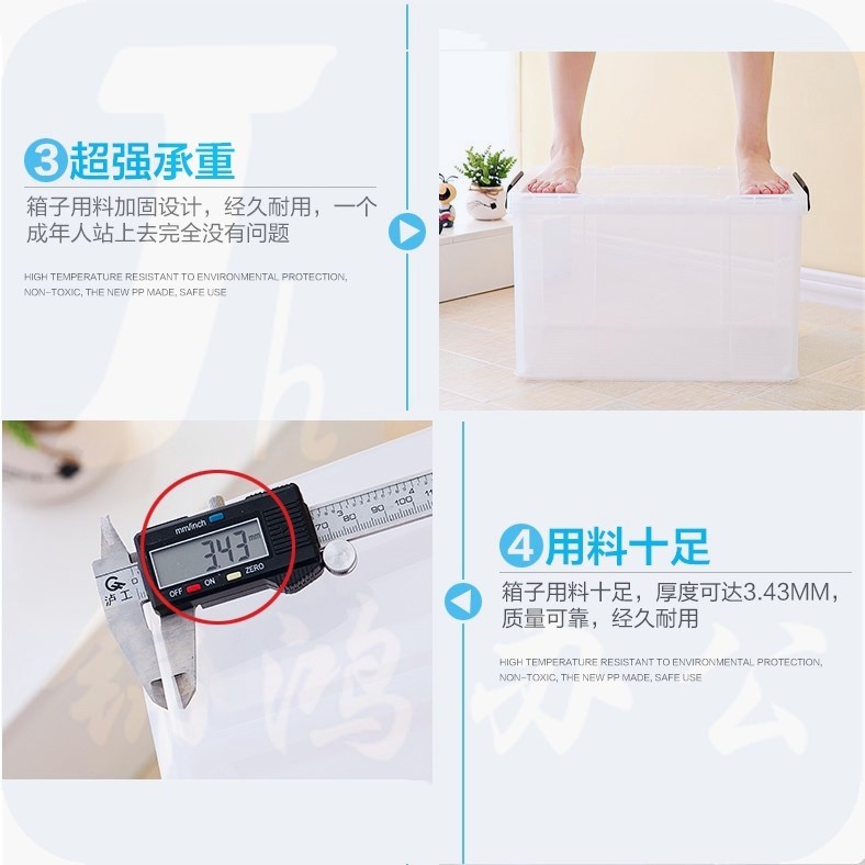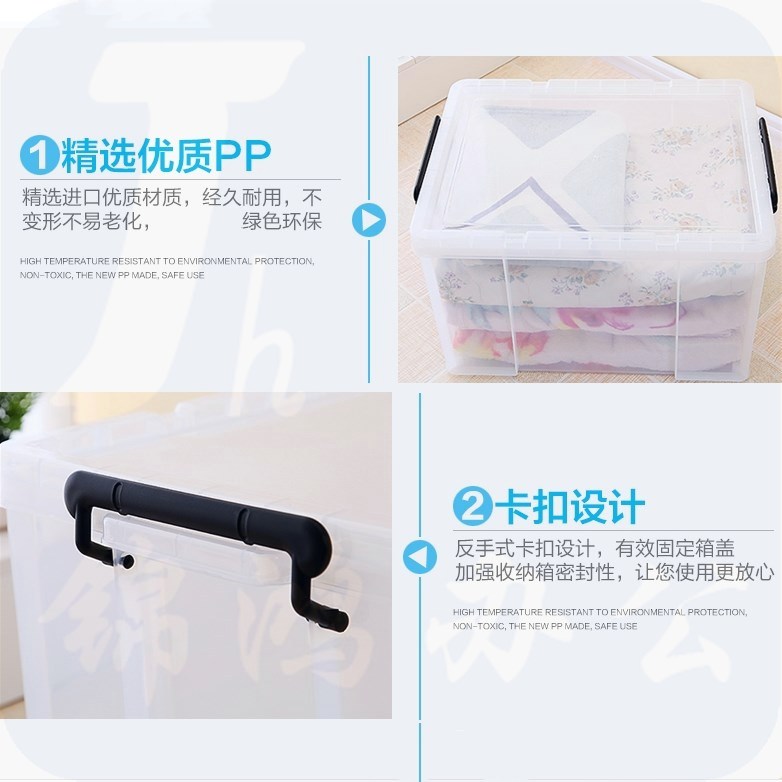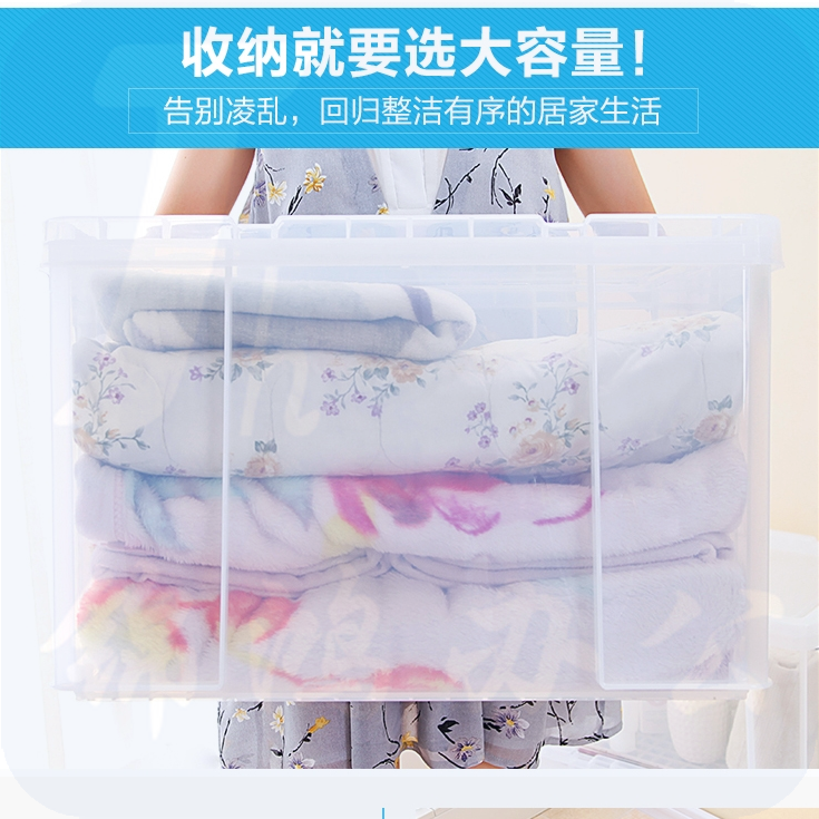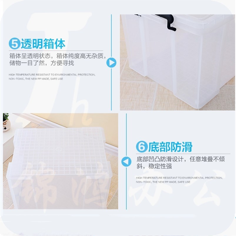 巨联 防摔防裂整理箱储物箱 96升 680×480×380 透明收纳箱塑料储物箱特大号收纳盒大号装衣服书的箱子整理箱 10个/箱