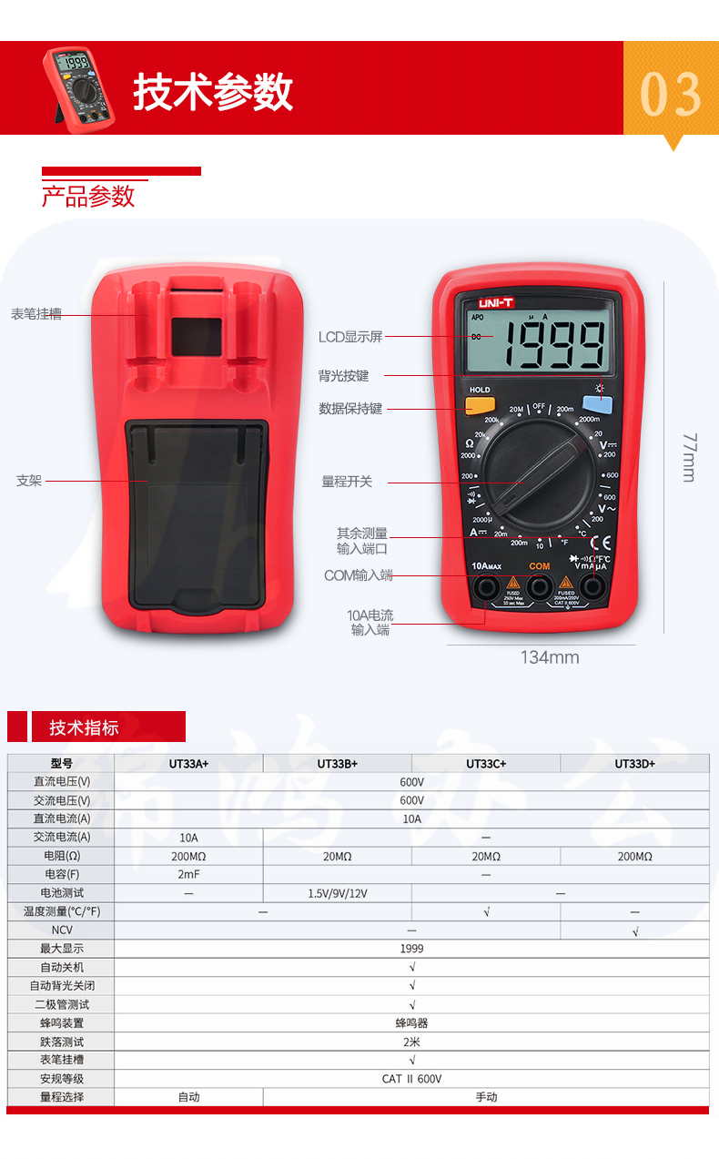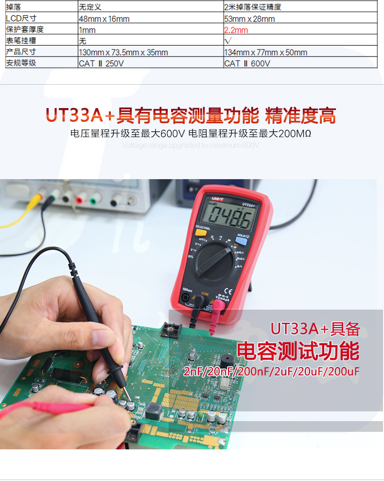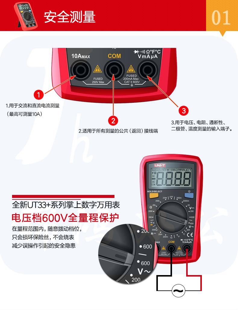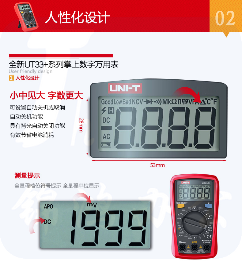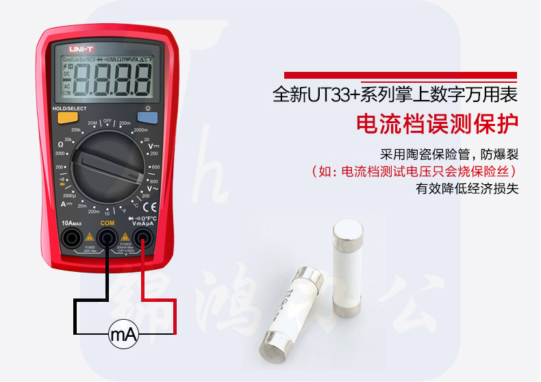 优利德(UNI-T)增强版自动防烧小型数显万用表UT33A+