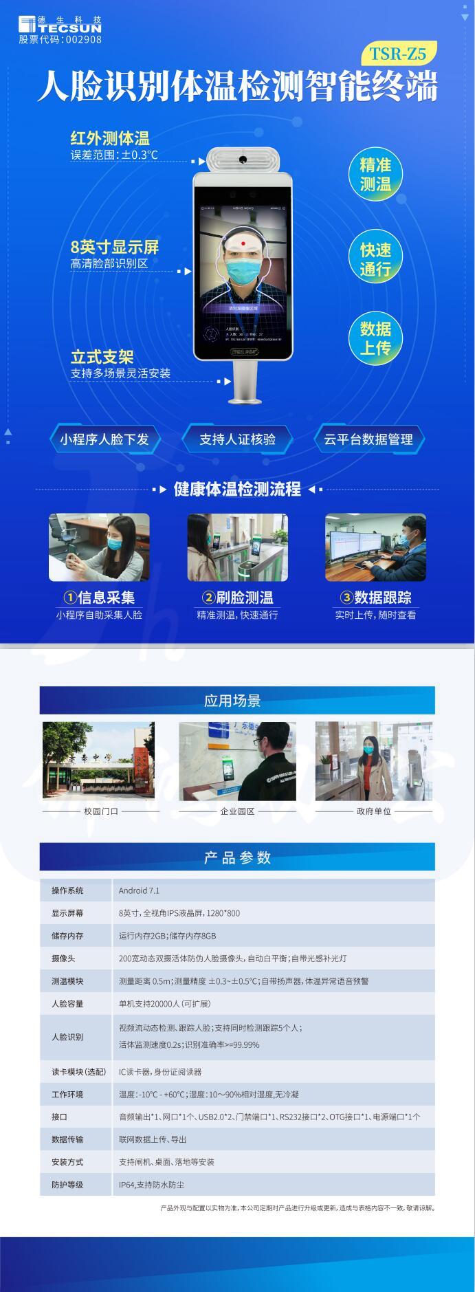 德生AI门岗 TSR-Z5 智能人脸识别测温一体机 快速人体红外体温监测 标准款