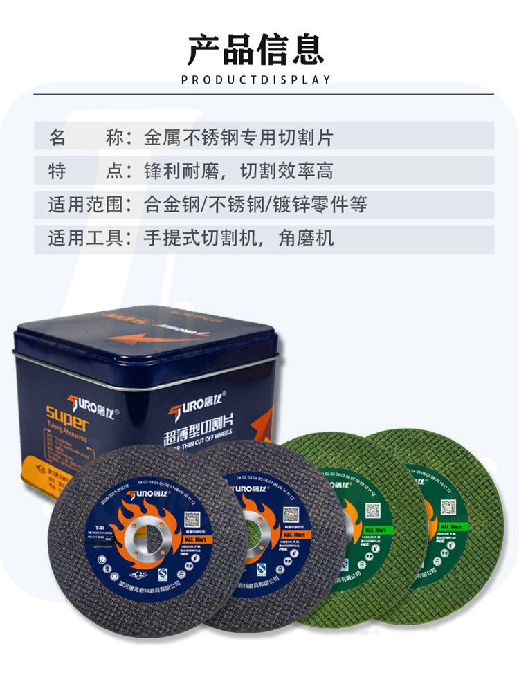 屠龙 350*2.5*25(绿色)30片/盒 不锈钢切割片树脂切割片切割机无齿锯片金属切割片