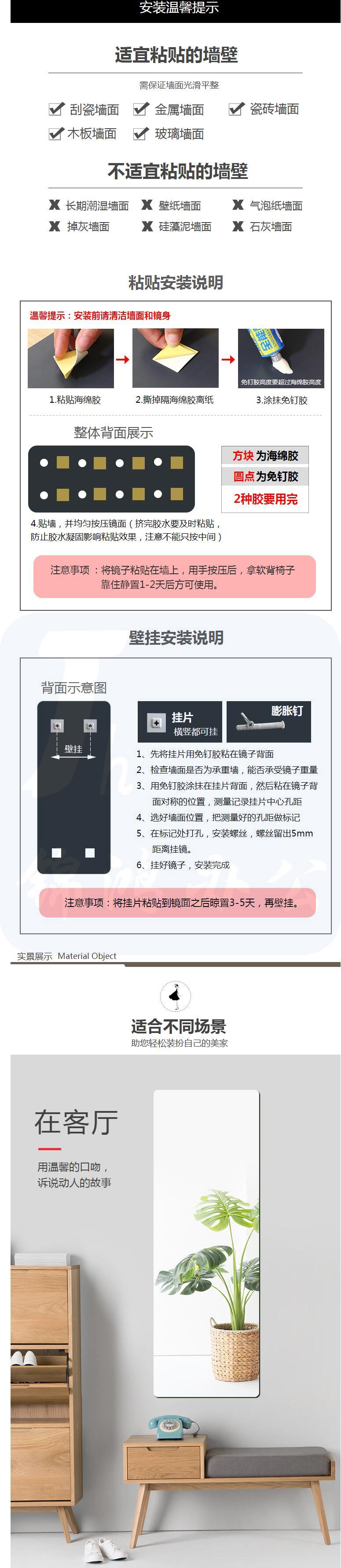圆角150*50cm 穿衣镜子全身镜无框粘贴墙壁挂试衣镜子 (不含安装) 货号:JC
