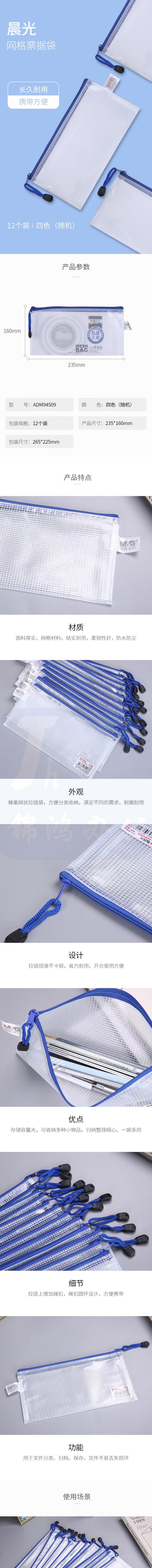 晨光 A6文件袋防水拉链袋pvc网格网纹袋票据资料袋ADM94509