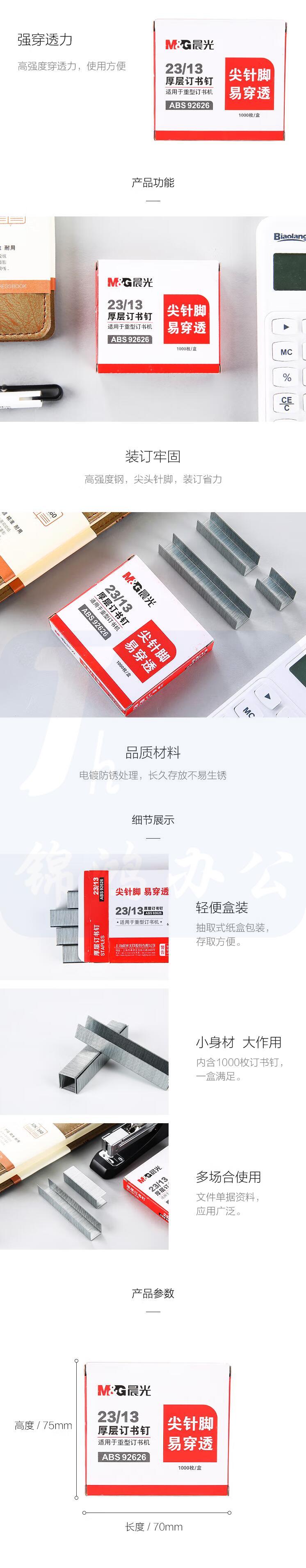 晨光 ABS92626厚层订书钉 10盒/组 23/13号订书钉 易穿透订书针 重型订书钉 1000枚/盒