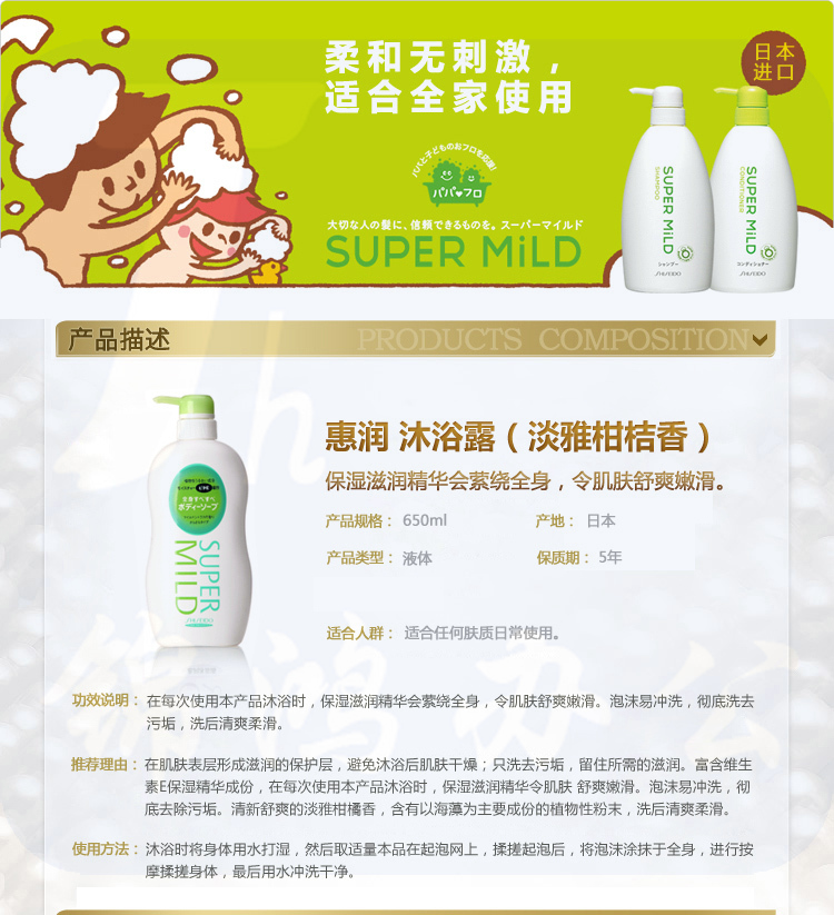 资生堂 惠润沐浴露(淡雅柑橘香) 650ml (9瓶/箱)
