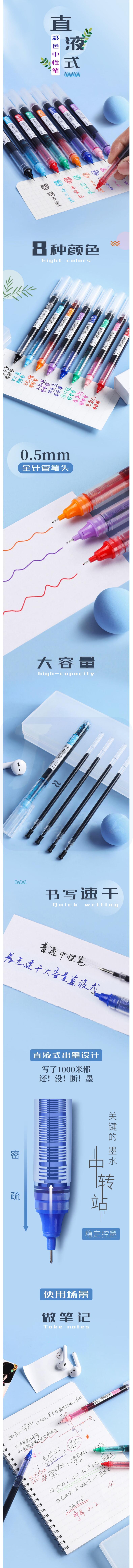 晨光 0.5mm多色彩色中性笔 速干直液式走珠笔 全针管签字笔 8支/盒ARPM2007