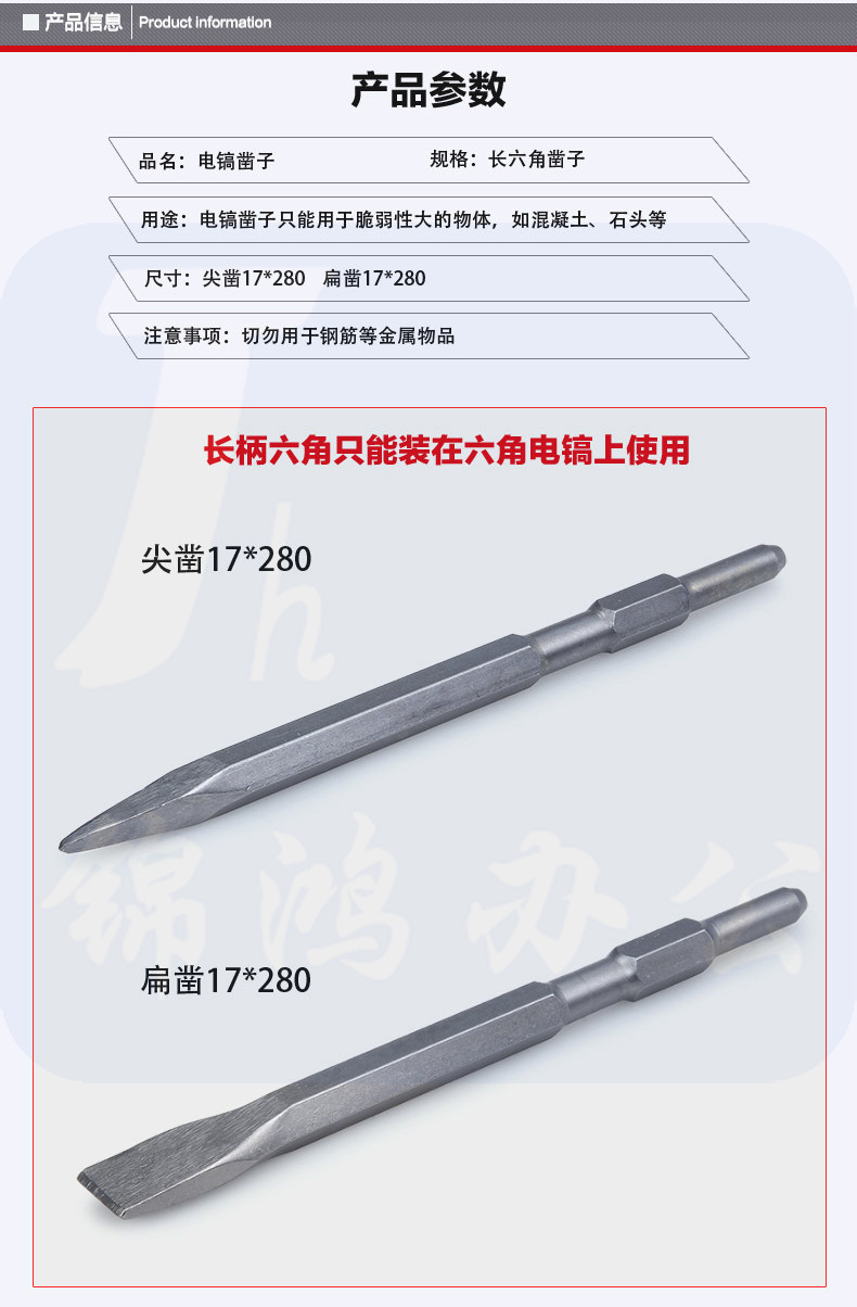 大地(DADI)17*280 扁 长六角钢凿电镐镐尖镐钎凿子 扁头