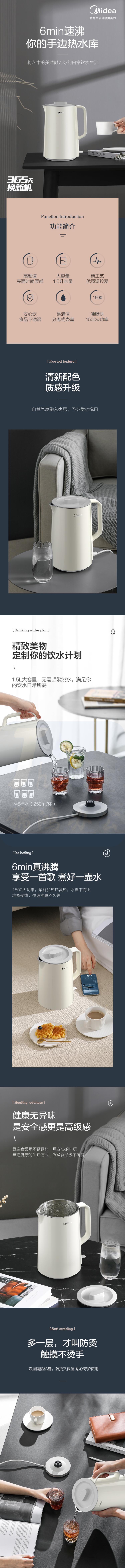 美的(Midea)电水壶 不锈钢开水壶 热水壶 1.5L SH15NS