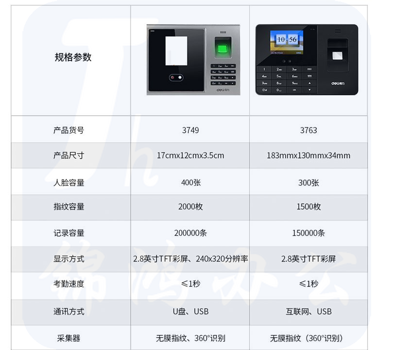 得力(deli) 3749人脸识别考勤机 (200人脸+2000枚指纹)指纹考勤机