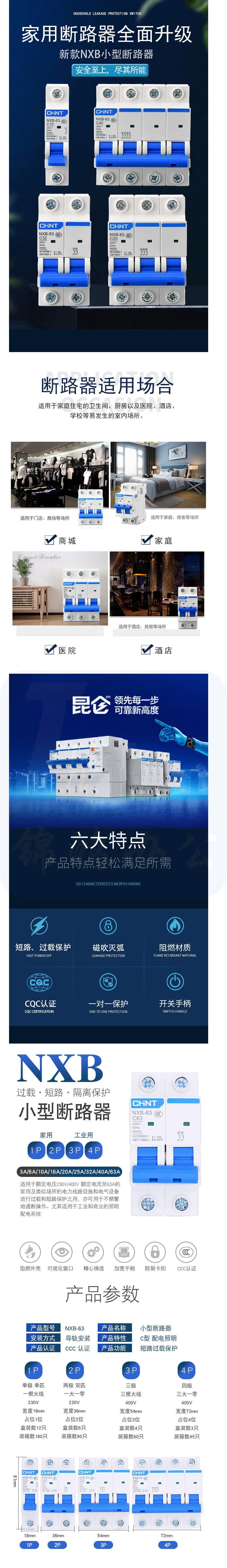 正泰 NXB-63-3P-C63 空气开关 过载空气开关 3P 63A