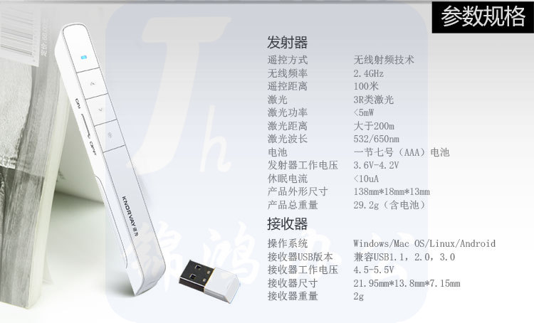 诺为 激光笔 N31 Mini 白色 红光 控制距离50-99米 锂电版 内置锂电 可充电