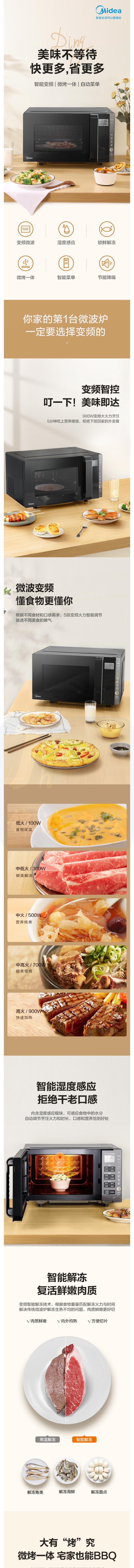美的 变频家用微波炉光波烧烤炉 微波炉一体机 湿度感应 900W微烤一体23升 PC23W5(ZMD安心系列)