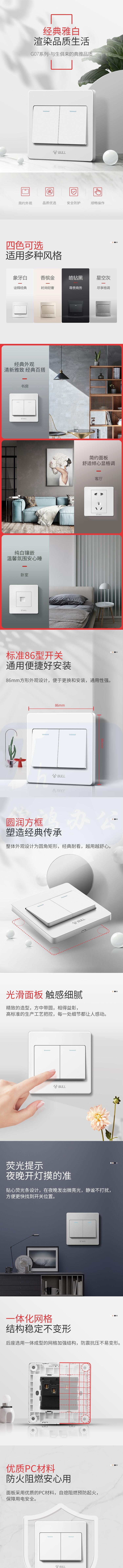 公牛 开关插座 二开单控开关 86型 G07K211