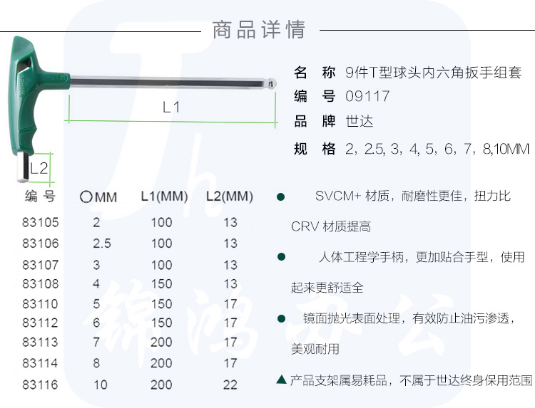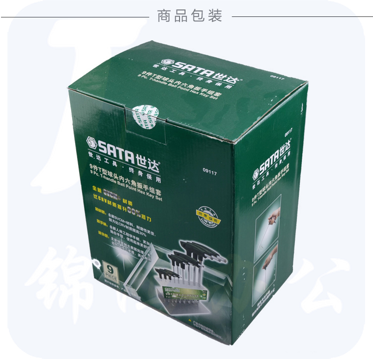 世达(SATA)9件T型球头内六角扳手组套货号09117