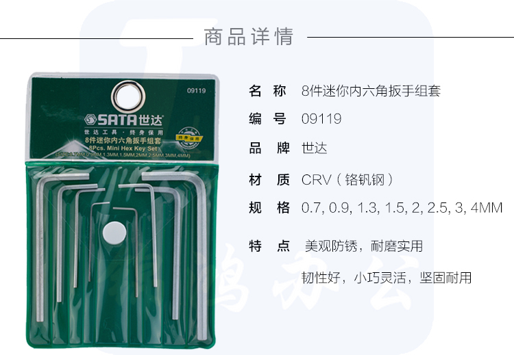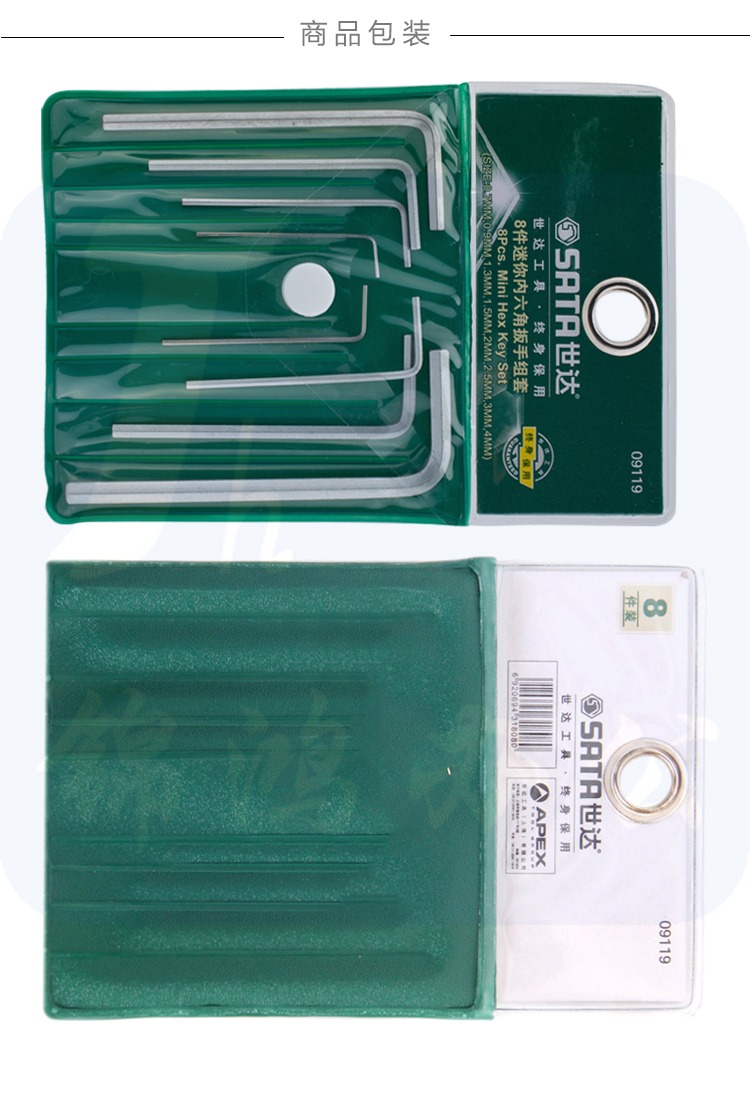 世达(SATA)8件迷你内六角扳手组套货号09119