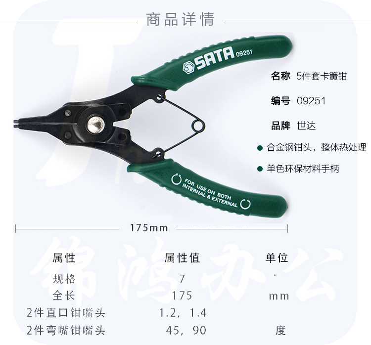 世达(SATA)5件套卡簧钳/挡圈钳 货号09251