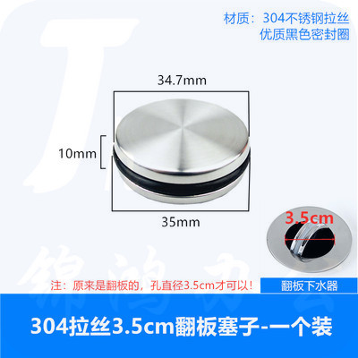 304不锈钢下水器 翻板盖旋转堵头 直径35mm高约10mm 货号:JC