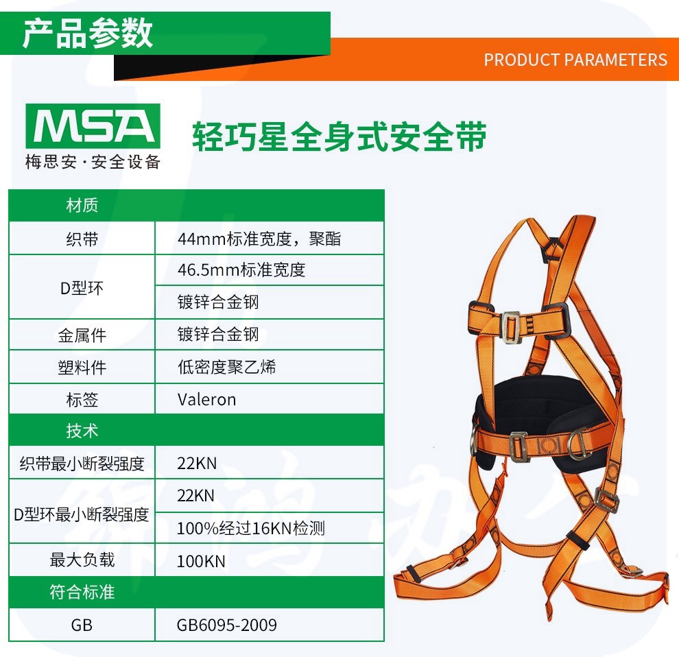 梅思安MSA 10129290轻巧星全身式安全带高空防坠落