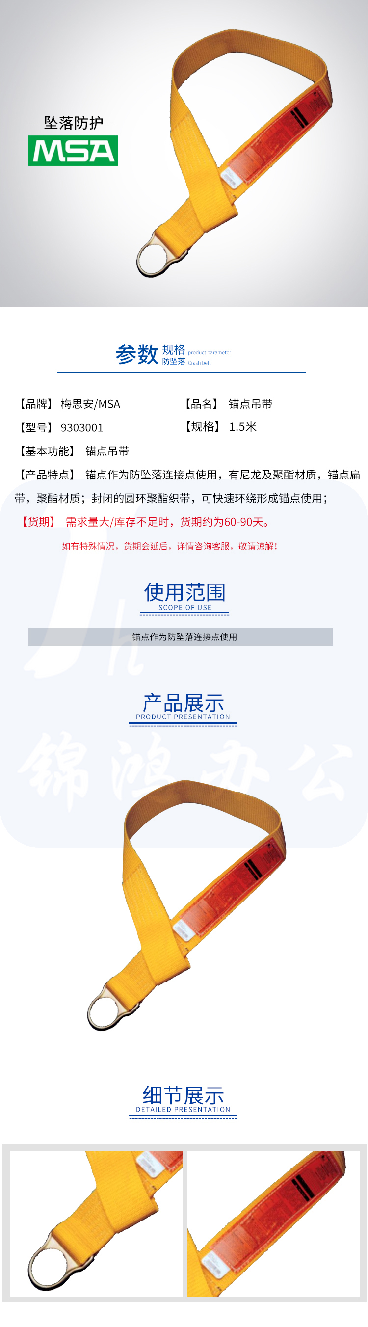 梅思安/MSA 9303001锚点吊带 尼龙材质 (1.5米/1条)