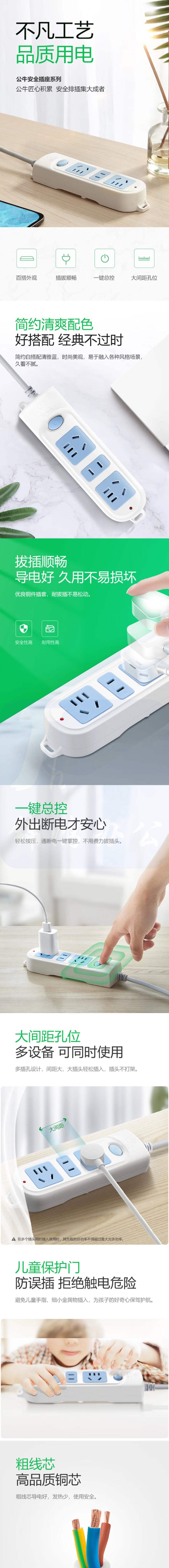 公牛GN-606A 3位总控 3米多位插座新国标/插线板/插排/排插