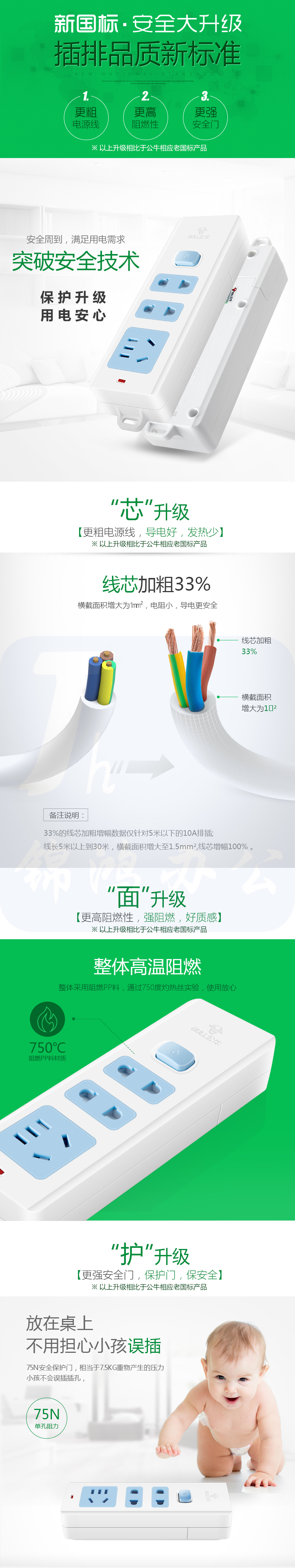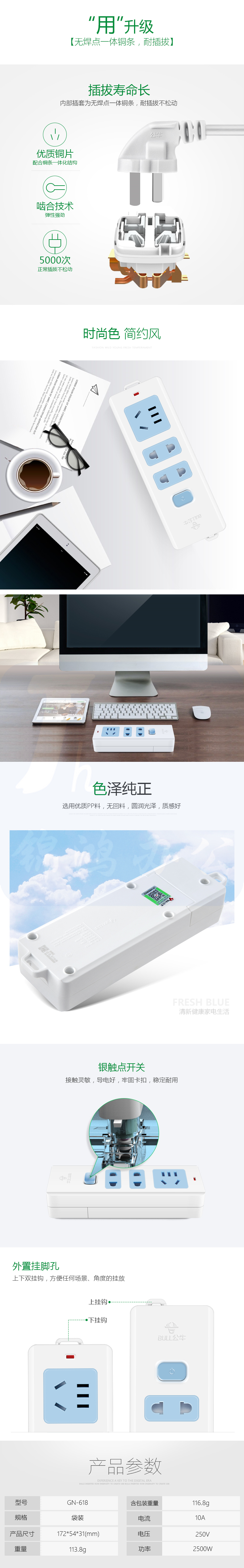 公牛 GN-618 3位总控无线插座线板排插插线板拖线板